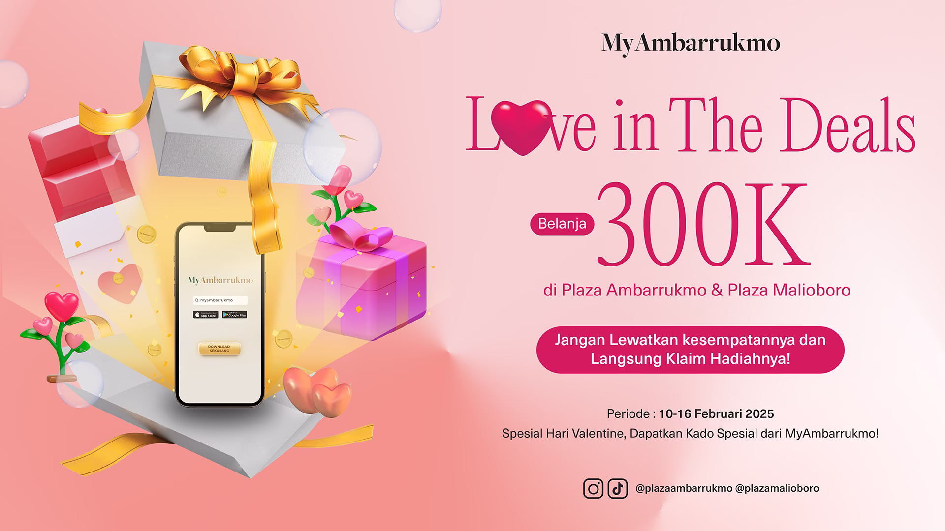 Euforia keseruan Hari Valentine dapat dirasakan di Plaza Ambarrukmo dan Plaza Malioboro pada 10-16 Februari 2025. Spesial untuk para pengunjung yang berbelanja pada periode tersebut, dapat mengikuti aktivasi seru dari MyAmbarrukmo yaitu ‘Love in The Deals’.