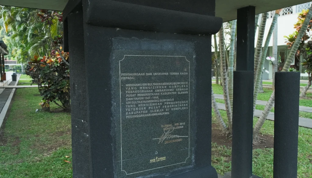 Termasuk Kedhaton Ambarrukmo yang juga digunakan sebagai kantor administrasi Bupati sebagai Kepala Pemerintah Daerah Kabupaten Sleman pada tahun 1947 hingga 1964. Total sebanyak lima Bupati Sleman selama periode 1945-1964 pernah berkantor di Ambarrukmo. Peristiwa ini diabadikan dalam bentuk monumen “Panca Hasta” (Lima Tangan) yang bisa dilihat di Pesanggrahan Ambarrukmo.