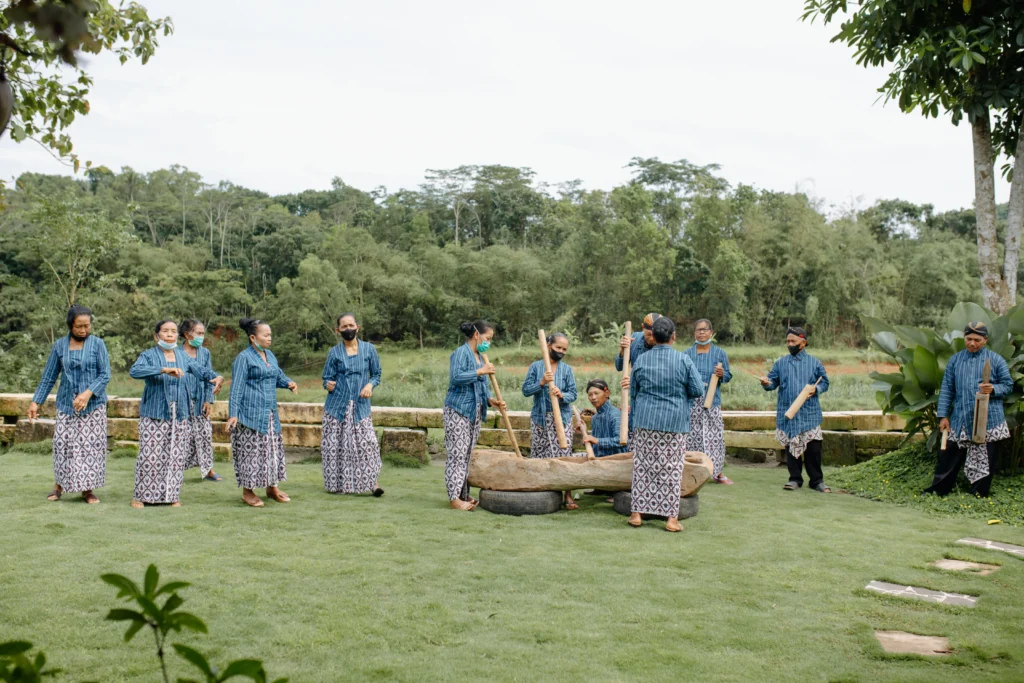 Bunyi “duk-duk-duk” dari alu yang menumbuk padi di lesung menjadi irama khas Gejog Lesung. Dulu, suara ini menandai musim panen atau gerhana bulan. Kini, tradisi tersebut sering ditampilkan dalam festival budaya. Selain menyenangkan, Gejog Lesung menjadi simbol kerjasama, ungkapan syukur atas panen dan semangat masyarakat pedesaan.