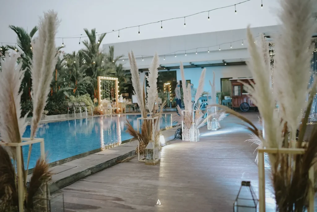 Alternatif lainnya bagi pasangan yang menginginkan konsep venue yang outdoor adalah dengan menggelar acara di area poolside. Lokasi venue berada di lantai 5 dengan daya tampung hingga 100 orang. Selain menyediakan lokasi, GRAMM HOTEL by Ambarrukmo juga menawarkan berbagai wedding package yang mencakup lebih banyak fasilitas seperti katering, entertainment, sound system, dan masih banyak lagi.